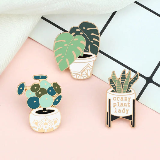 "Crazy Plant Lady" Plant- Themed Enamel Pins