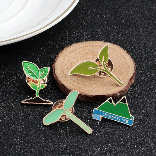 Plant Themed Enamel Pins (Leaves, Plant, Mountain & Seedling)
